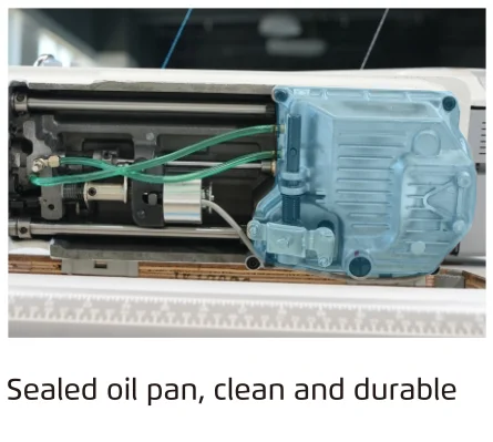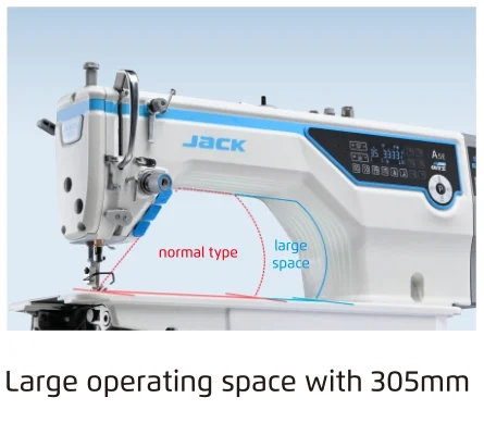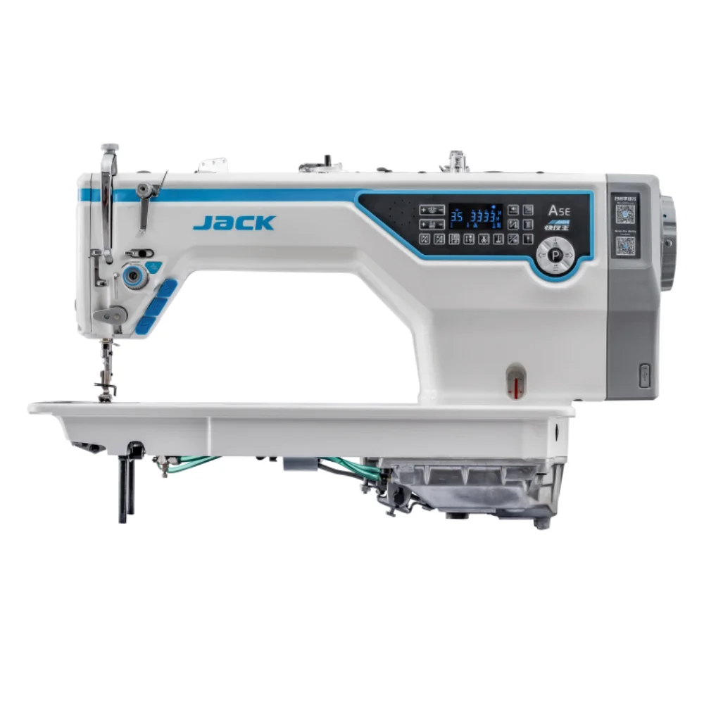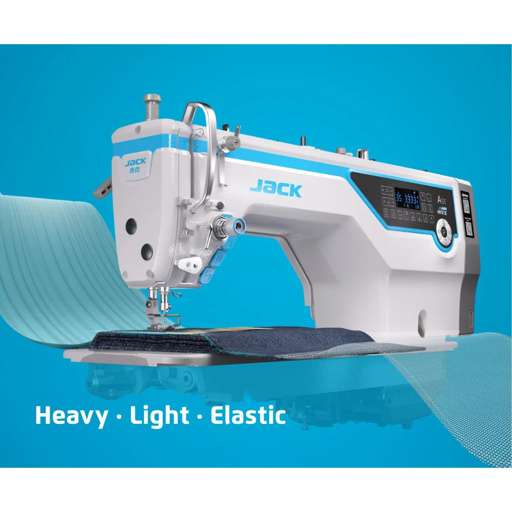 The Jack A5E-A A.M.H FABRIC ADAPTIVE Single Needle Lockstitch Machine is quickly perceive fabric changes, adjust the synergy rhythm between cloth feeding force and needle penetration force in real time , realize continuous sewing of different fabrics without adjusting the machine, and achieve the effect of adaptive fabrics.